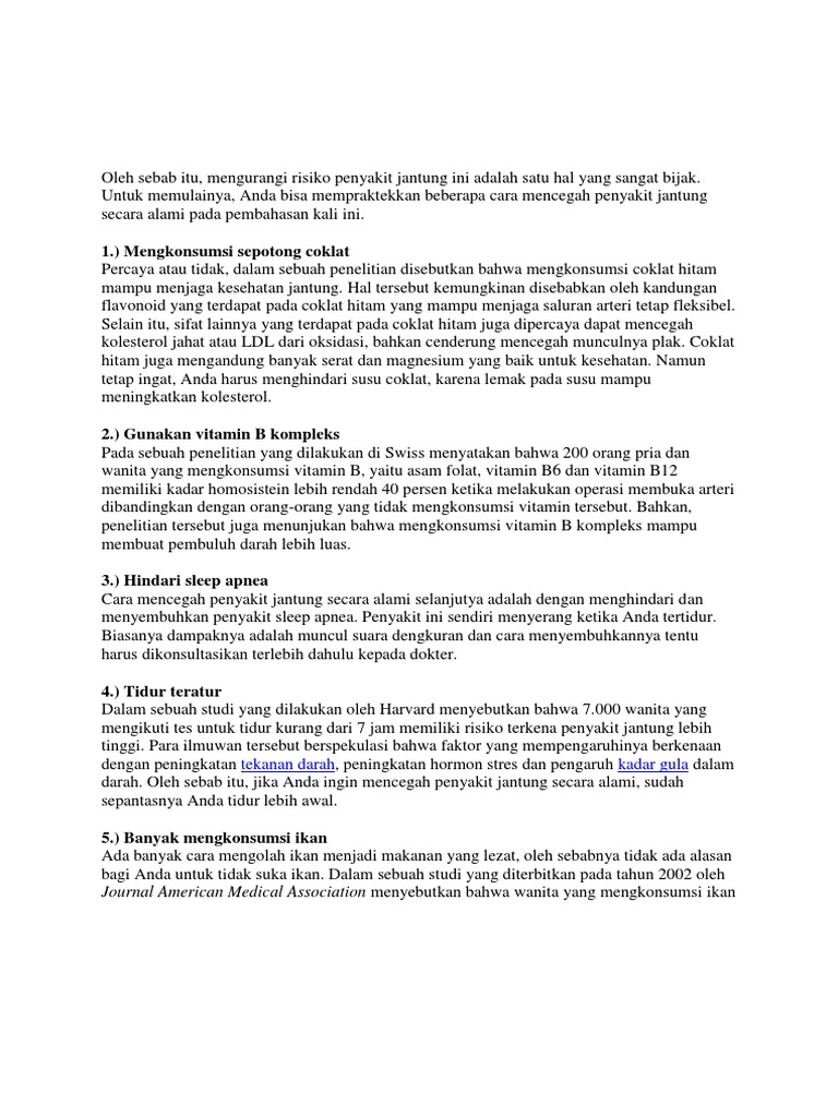 Syaratnya cuma satu, cokelat harus yang mengandung 70 persen cacao. Penyakit jantung berkaitan erat dengan pola hidup dan pola makan yang anda lakukan. Cara membuat kesehatan jantung menjadi nomor 1. Penyebab, gejala, cara mencegah dan komplikasi. Di samping itu, faktor psikologis seperti stress misalnya.