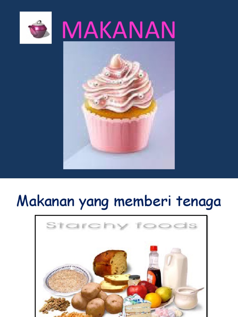 Makanan yang memberi tenaga dapat membina badan, dan dapat menjauhi kita daripada mendapat penyakit.
