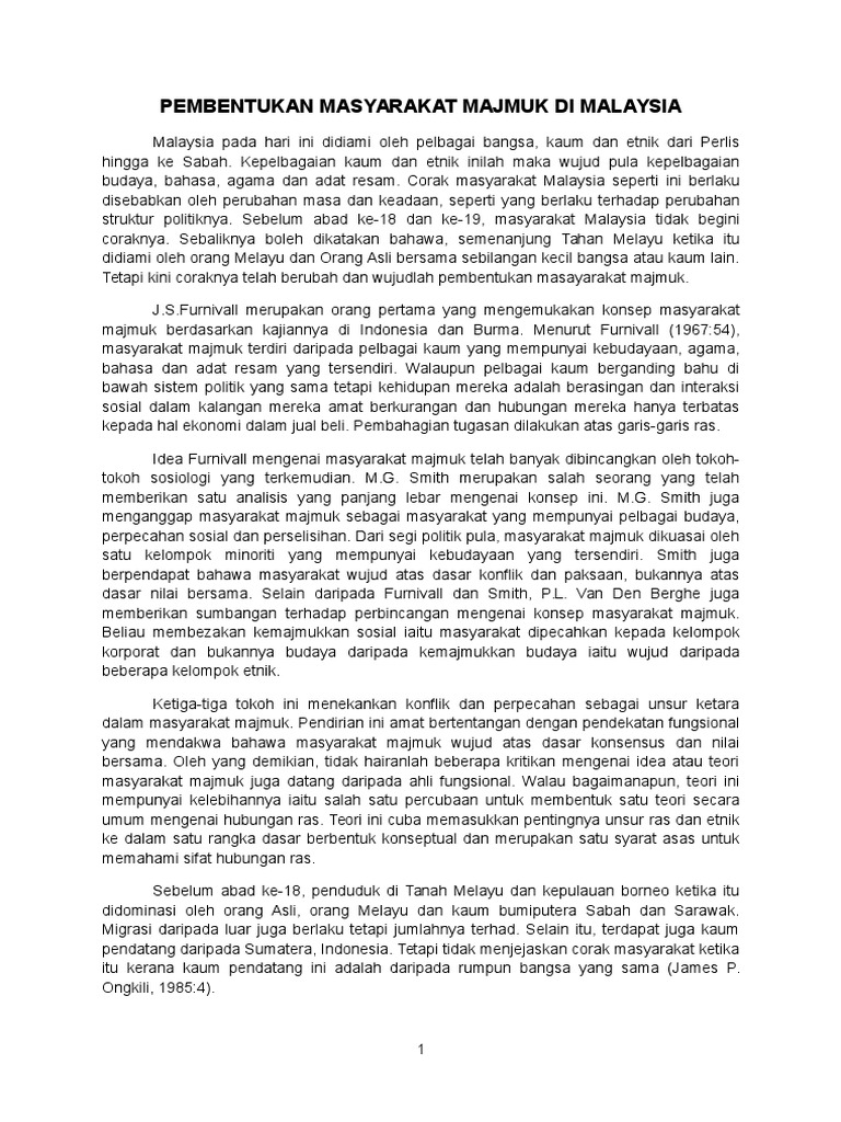 Week 1 Docx 1 Kriteria Masyarakat Majmuk Di Malaysia Pada Awal Kemerdekaan Mencakupi Perkara Berikut Iaitu Correct I Pekerjaan Mengikut Kaum Ii Tempat Course Hero from www.coursehero.com Sebagaimana bangsa ini, indonesia dikenal dunia lewat kemajemukannya. Di antaranya adalah adanya perbedaan suku bangsa, adat, budaya dan kedaerahan. Pada hari ini, masyarakat majmuk di malaysia terajadi secara tidak sengaja. Cikal bakal masyarakat madani di indonesia telah muncul bahkan sebelum kemerdekaan. Since malaysia got its independence around 60 years, it has known as a country which had a plural society not even the variety of language but also the this has shown that the plurality in malaysia has been a long time. Masyarakat majmuk di malaysia terdiri dari pelbagai etnik yang dikategorikan mengikut cara hidup, pola penempatan, pekerjaan dan. Agama merupakan isu sensitif di negara yang berpenduduk majemuk dan memiliki komunitas cina dan india yang cukup besar itu. Masyarakat majemuk dapat dikatakan sebagai kumpulan masyarakat yang memiliki perbedaan mengenai agama, ras, etnik dan suku namun tetap dapat hidup selaras dan harmonis.
