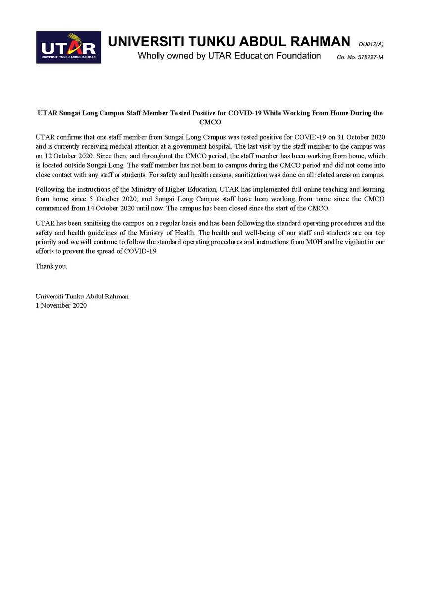 Universiti Tunku Abdul Rahman @ Sungai Long Campus - Utar Mushtaq Ahmed : At the universiti tunku abdul rahman, sungai long campus, our top priority is to ensure a safe, secure and healthy teaching and learning environment.
